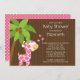 Comece seu chá de fraldas do safari de selva fora do direito com nosso convite moderno do chá de fraldas da menina que caracteriza um girafa cor-de-rosa & branco doce com uma palmeira & as borboletas ajustadas em um fundo marrom à moda. A parte traseira do convite caracteriza bolinhas cor-de-rosa de coordenação. Nossos convites bonitos do chá de fraldas do girafa são o safari perfeito convidam para um chá de fraldas da menina e têm o obrigado de harmonização você os cartões, os selos postais & as etiquetas de nota disponíveis em nossa loja no design do ©Zenware de www.celebrateitinvites.com