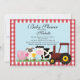 Comece seu chá de fraldas do bebé do barnyard, chá de fraldas do bebé ou o chá de fraldas neutro fora do direito com nosso convite pequeno bonito do chá de fraldas dos animais de fazenda. Nossos na moda & convite moderno caracterizam uma cena adorável do animal de fazenda que caracteriza uma árvore, um celeiro vermelho, um traidor da fazenda com um porco do torrador, carneiros, & grupo da vaca em um fundo de Rolling Hills com uma cerca de piquete branca ajustada em um fundo dos azul-céu. A parte traseira de é uma cor de coordenação marrom na moda. Visite nossa loja para uma grande seleção do convite do chá de fraldas para meninos, meninas ou um chá de fraldas do ponto morto do género. design ©Babystar