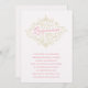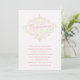 Esta quinceanera cômica convida a apresentar floreios bonito em torno da frase "Quinceanera", que é escrita em uma bela escrita. O esquema de cores do convite é rosa, ouro e creme.