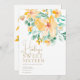 Bonito festa de aniversário verde-floral verde-floral 16 com cores arrojadas, pintadas à mão, amarelo-rústico, laranja-giro e folhas verdes, com uma elegante e moderna letra de escrita de pincel. Perfeito para primavera, festa de aniversário de verão!
