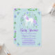 Este convite para chá de fraldas apresenta um design de unicórnio floral bonito com elementos faux roxos de brilho num fundo aqua. Há um padrão atrás. Personalize com seu próprio texto. Outros itens de chá de fraldas correspondentes a este design também estão disponíveis. Visite as páginas de coleta em nossa loja para ver o intervalo de cheios.