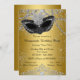 convite de festas bonito preto e mascarada dourado. Você pode personalizar facilmente este belo convite de festas preto e mascarada dourado para o seu evento adicionando seus detalhes no estilo de fonte e na cor e na redação de sua escolha.