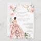 Elegante design de luxo com rosas brancas e rosas cor-de-rosa com pincel suave, sotaques dourados, e uma boneca linda com um luxuoso vestido de bola voada. Todo texto é totalmente personalizável.