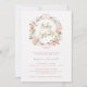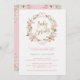 Este belo convite para o bebê borrifado apresenta uma coroa de rosas cor-de-água rosa encantadores com folhas verdes e sotaques de ouro de rosa falsos, e um roteiro de ouro falso no centro. A parte traseira da placa é uma cor rosa suave com buquês florais correspondentes nos cantos.