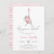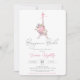 Convite para Chá de fraldas em Torre Eiffel. Tema de Paris, rosa cor-de-rosa azul floral, totalmente personalizado.