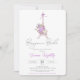 Convite para Chá de fraldas em Torre Eiffel. Tema de Paris, rosa cor-de-rosa azul floral, totalmente personalizado.