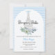 Este elegante convite à chá de fraldas, azul e branco, de Bonjour Bebe Paris, inspirado em Paris, será o começo perfeito para o seu chá de fraldas temático francês. Apresentando a Torre Eiffel, um arco de moda e flores românticas. Um bebê romântico azul convida para um chá de fraldas de tema em Paris.
