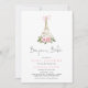 Bonjour Bebe Paris Chá de fraldas francês Eiffel rosa Convite apresenta ouro Torre Eiffel com arco rosa no topo e flores cor-de-rosa com verde. A parte traseira do convite contém faixas cor-de-rosa. Envie-me uma mensagem para todos os ajustes necessários ou itens correspondentes.