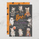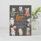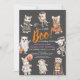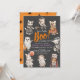 Este belo convite de aniversário "nosso pequeno boo" do Dia das Bruxas, neutro em termos de gênero, apresenta uma cinza escura com animais em fantasias, como porco, gato, cão/chihuahua, guaxinim, cabra, furão, coelho/coelho e rato. O verso apresenta um fundo laranja com padrões de aranha. Personalize-o para as suas necessidades. Você pode encontrar produtos correspondentes na minha loja.