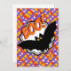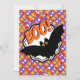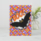 Um morcego assustador engraçado diz Boo! Um fundo de milho doce neste cartão de Halloween aumenta a diversão. Personalize a mensagem para uma de suas escolhas.