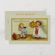 Este convite contém duas crianças pequenas que brincam inofensivamente umas com as outras, divertidas por celebrarem o Halloween.