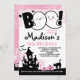 Personalize este convite de aniversário de "Dia das Bruxas Rosa" com seus próprios detalhes!