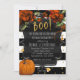 BOO! Convites de festa de Halloween com Rosas Listradas de Preto e Branco & Abóbora