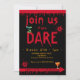Esta engraçada, assustadora e sangrenta "Enter se você ousar..." personalizada chamada de Halloween contém texto personalizado para o nome da sua casa (sobrenome e HAUNTED HOUSE) para torná-la assustadora e assustadora! Esquema de cores preto, laranja e vermelho (o fundo preto pode ser personalizado) com bebidas de skeleton assustadoras como sotaque de design.