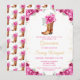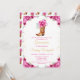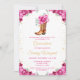 Este elegante e glamouroso convite de aniversário da Quinceañera apresenta uma bela bota floral rosa quente e castanha de vaqueiro. O texto combina o script manuscrito e as fontes sans serif modernas para um aspecto elegante e sofisticado. Os arranjos florais e o confete de ouro criam a mistura perfeita de rústicos e quicos. Gráficos por www.etsy.com/uk/shop/SunflowerDayLove