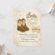 Classic beige and tan neutral tones with an understated simple adorable background and little boots and a bow for a cute Gender Reveal theme.
