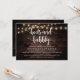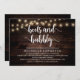 Placa de Chá de panela para caligrafia moderna (Boots and Bubble), em cordas de madeira escura rusticadas, luzes de design temática. Convide os convidados com este Cartão de Convite perfeito. Adicione os detalhes do seu chá de panela em texto correspondente.