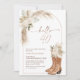 Boots Florais Boot Hello aniversário de 40 anos Convite para aniversário de 40 anos de Convite com botas de vaquinha, adoráveis arranjos florais beige, rumo à caligrafia moderna e forma arquitetada. Ideal para alguém que procura um convite para aniversário de 40 anos de temas ocidentais de cor neutra.