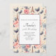 Convite de aniversário com um padrão elegante. Rosas rosa, borboletas de cinza azul e uma torre Eiffel. Um padrão temático francês.