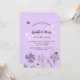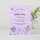 Um fundo colorido violeta e lavanda. Decorados com abelhas e pintados de flores silvestres em violeta, rosa e uma borboleta grande. Personalize e adicione um nome e detalhes da parte.