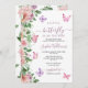 Convite Borboleta Elegante, Chá de fraldas Floral Rosa e R
