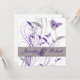 Este elegante conjunto de convites tem um fundo branco brilhante com um desenho floral cinza. Acima disso, há uma camada desse desenho floral em lilás e roxo com uma borboleta no canto superior direito, bem como espalhada por toda parte. Na seção inferior, há uma faixa cinza com um grande símbolo "e" que combina. Este conjunto inclui convites, cartões de agradecimento, cartões de número de mesa, selos de envelope, rótulos de vinho, pastas e rótulos de endereço de devolução disponíveis. Use os adesivos de selo de envelope para qualquer um dos seus presentes DIY - estes estão disponíveis em tamanhos grandes e pequenos! A pasta faria um lindo presente de aniversário.