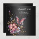 Borboleta Floral Cor-de-rosa-Elegante aniversário de 30 anos na Festa de aniversário Preta ou Convite para Todos os Eventos. Fundo Dourado e roxo com metal Dourado com órbitas roxas de joias. Personalize com seus próprios detalhes.
