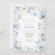 Bebê em Bloom | Um convite vibrante ao Chá de fraldas com borboletas e florais em tons azuis e brancos. Um design perfeito para o evento de chá de fraldas do seu bebê.