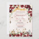 Quinceanera convidada com papel picado de ouro e sotaque, luminários mexicanos suspensos, e belo floral de aquarela em vermelho rico marrom/burgundy. Esta design apresenta gaiolas de aves caídas e borboletas de monarca. Veja o compro deste design em variações múltiplas, incluindo garotas em vestidos de marmelo com várias cores de tom/cabelo