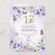 Convite Borboleta Geométrica Roxa e Dourada 17º Aniversári