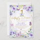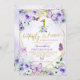 Borboleta Geométrica Roxa e Dourada Primeiro Convite de Aniversário