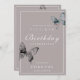 Um belo convite de aniversário moderno em madrugada com borboletas pintadas à mão contendo um padrão de rosa floral. Personalizável para qualquer marco de aniversário