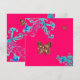 Borboletas douradas caprichosas, exuberantes fúcsias vermelhas, floreios aqua e azul-teal, flores e florações na Primavera. Pintura original em aquarela com folha dourada e prateada por Bulgan Lumini (c). Fácil de personalizar com suas iniciais e texto próprio como anúncio nupcial, cartão de mesa, cartão de agradecimento para chá de noiva, festas de 16 anos, festas, formatura, chá de noivado, aniversário ou qualquer outro evento que você deseje!