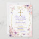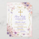 Borboleta rosa púrpura, EDITÁVEL, cor-de-rosa, primeira sagrada convocação da Dourada cruz Frame Primera Comunión Invitación Blush Pink Lavanda Púrpura Flores