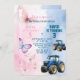 Convite de Aniversário, Borboleta e Trator Sibling Convite de Aniversário, Pode ser utilizado para o aniversário de qualquer convite de idade