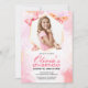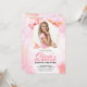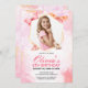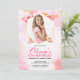Celebre o dia especial da sua borboleta com este convite de aniversário meticuloso e encantador! Apresentando um delicado fundo cor-de-rosa e dourado, enfeitado com belas borboletas, este convite é perfeito para o primeiro aniversário ou para a festa de aniversário de qualquer menina. Adicione sua própria foto ao design e personalize com os detalhes do seu partido. Deixem as borboletas fluírem e os desejos de aniversário fluírem!