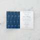 Espalhem suas asas e brinquem com esta delicada e feminina design. A frente anuncia o evento com o número "15" e o texto editável. Uma borboleta azul baseada em uma foto de uma morfo azul repousa no número para enfatizar sua importância. Azul e prata florescem atrás da borboleta como uma brisa. O cobrir dentro do convite oferece um contraste azul marinho da frente branca e apresenta uma borboleta e um padrão florescente. Finalmente, edite o texto na página dentro para a direita para ajustado sua celebração. Nenhum gráfico foi incluído nessa página para máxima edibilidade. Perfeito para celebrar a quinceañera.