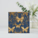 Convite Borboletas Azuis Metálicas com Vinhas Douradas