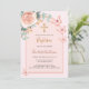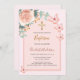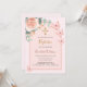 Um fundo cor-de-rosa pincelado com um arco dourado rosa. Decorados com ouro rosa e borboletas cor-de-rosa esbranquiçada, rosa, eucalipto verde e borboletas. Personalize e adicione um nome e detalhes. Traseira: cor de fundo cor-de-rosa pincelada.