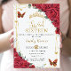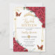 Convite Borboletas Douradas Florais Rosa vermelha Doce Dez