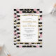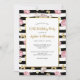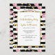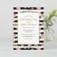 Comemore com estilo este belo convite de festas com os detalhes do seu evento cercado por uma borda falsa de ouro impressa - tudo colocado contra um fundo de listras preto e branco acentuado com borboletas, rosas e margaridas douradas. Perfeito para qualquer aniversário, bebê ou chá de panela, aposentadoria, aniversário e muito mais. Qualidade maravilhosa e tão fácil de personalizar.