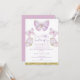 Borboletas Douradas roxas Girls primeiro aniversario Convite para a realização de um convite para o aniversário de uma simples borboleta doce, com cinco borboletas de ouro e roxas, falsa cinza dourada e pontos coloridos de mauve. Este nosso primeiro convite de aniversário para a borboleta é ideal para uma festa de aniversário de borboletas roxa e dourada.