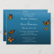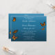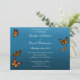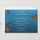 Borboletas monarca elegantes em laranja contra um fundo azul ombre, criando um design romântico e inspirado na natureza. Perfeito para casamentos ao ar livre, no jardim ou com tema de borboletas.