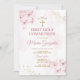 Convite Borboletas rosa Douradas Cruz Primeira Comunhão Sa