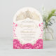A primeira página do seu conto de fadas começa com esta elegante design tiara quinceañera! Apresentando flores exuberantes, texturas velhas e sotaques de folha de vidro, esta design traz uma vibração romântica e elegante ao seu grande dia. Perfeito para sua celebração clássica ou princesa de quinceañera. Peça ou baixe hoje e dê aos seus convidados o tratamento real!
