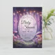 Entre em um mundo de encanto com este design de convite Borboletas Roxas e Céus Estrelados. Apresentando uma floresta sonhadora ao crepúsculo iluminada por luzes suaves, cogumelos brilhantes e borboletas a voar, esta cena caprichosa cria um cenário mágico para qualquer ocasião especial.