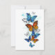 Borboleta azul-clara e voadora morfo e borboleta-monarca laranja num fundo branco. Morpho. Borboleta monarca. Design com borboletas.