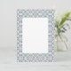 Este convite de casamento moderno em branco tem uma borda de azulejo azul e branco, com destaques amarelos. O estilo evoca a calidez do Mediterrâneo e texto personalizável para que possa adaptá-lo ao seu próprio casamento ou evento.