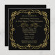 Este é um convite de celebração de 50º aniversário elegante que é tão especial quanto o casal a ser celebrado! Apresenta uma borda ornamentada com brilho falso dourado com o seu texto personalizado no meio. A parte superior do texto dourado claro é separada da parte inferior por um arabesco caligráfico, também em dourado. O verso do convite é preto sólido correspondente. Muito sofisticado! *Agradecimentos especiais a Dana Conditt pelo uso de sua arte neste design.