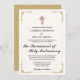 A Dourada Elegante Border Nuptial Mass White Invitation exude um charme clássico e sofisticado, ideal para casais planejarem um casamento cerimonioso e elegante. O cartão de convite apresenta um fundo esbranquiçado que proporciona uma canvas quente e sutil, melhorando a estética globalmente delicada e refinada. Este cenário flexível contrasta lindamente com o recurso de destaque: uma elegante e intrincada linha de borda do ouro que circunda o cartão, acrescentando um apelo luxuoso e eterno. Além do convite, colocado centralmente, está uma cruz saborosa, simbolizando a fé casal e o sagrado da sua união. Ao redor da cruz estão aglomerados de delicadas flores cor-de-rosa, que acrescentam um toque macio e romântico à design. Esses sotaques florais não só complementam a tonalidade do ouro, mas também introduzem um leve salto de cor, fazer que cativa visualmente o design. O coração do convite é dedicado a detalhes de casamento personalizáveis. Esta seção permite que cada casal adapte o texto às suas necessidades específicas, incluindo os nomes, a data, a localização e outros detalhes pertinentes da massa nupcial. A tipografia e a disposição do texto são meticulosamente selecionadas para se harmonizar com as elegantes fronteiras e designs florais, garantindo que o convite não só é informativo, como também é esteticamente agradável. Este convite em massa nupcial mistura perfeitamente a tradição com elegância, oferecendo um anúncio memorável para uma celebração sagrada.